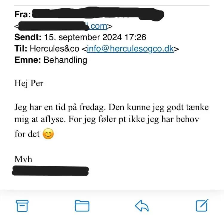 Få svar på, hvordan Hercules&Co kan hjælpe dig tilbage på sporet. Samtalen med Per er fortrolig og er en hjælp til, at finde den bedste løsning for dig. Samtalen varer ca. 15 min